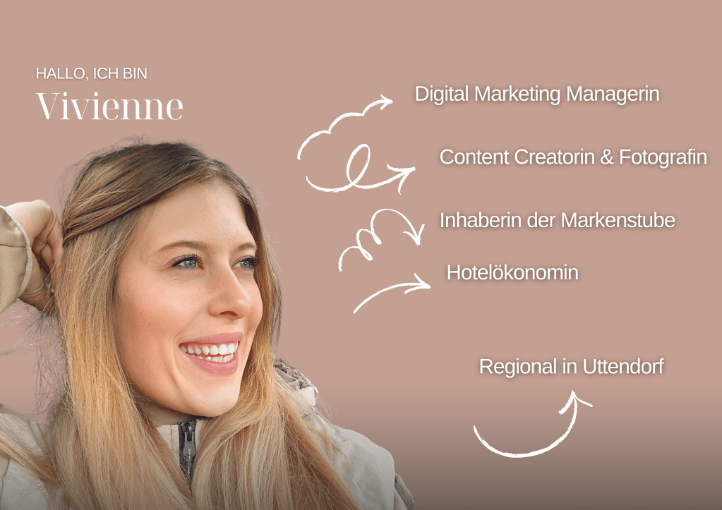 Ich bin Vivienne Schweitzer, Gründerin der Markenstube, gelernte Hotelfachfrau mit Zusatzqualifikation Hotelmanagement, Hotelökonomin und Digital Marketing Managerin mit einer Leidenschaft für die Hotellerie, Marketing und Design.